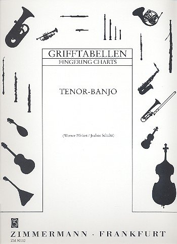 Diese Grifftabelle aus dem Zimmermann-Musikverlag enthält die Griffe für Tenor-Banjo mit Texterläuterungen in deutscher und englischer Sprache. Die Notenwerte sind im Violinschlüssel notiert, für jeden Ton wird schematisch dargestellt, welche Griffe auf den vier Saiten auf welcher Position des Griffbretts erfolgen müssen. Darüber hinaus sind Giro-Tabellen enthalten. Eine „Giro“ (ital. Rundlauf) ist auf dem Banjo eine häufig gebrauchte, in sich geschlossene Akkordfolge innerhalb einer Tonart.